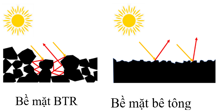 Giảm hiệu ứng đảo nhiệt đô thị: Nhờ khả năng giảm hấp thụ nhiệt và tăng cường quá trình bay hơi nước từ nền, nhiệt độ bề mặt giảm đáng kể, giúp làm mát không gian xung quanh.